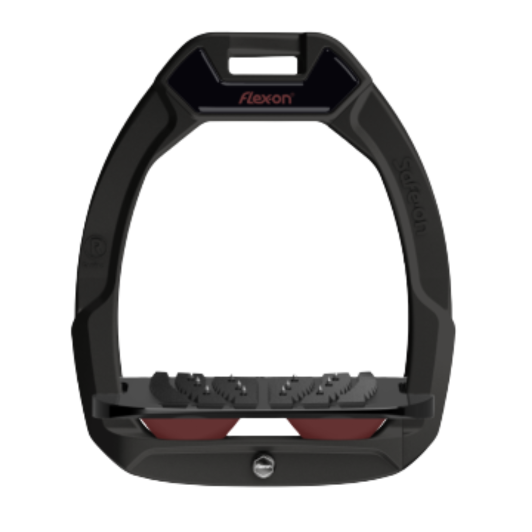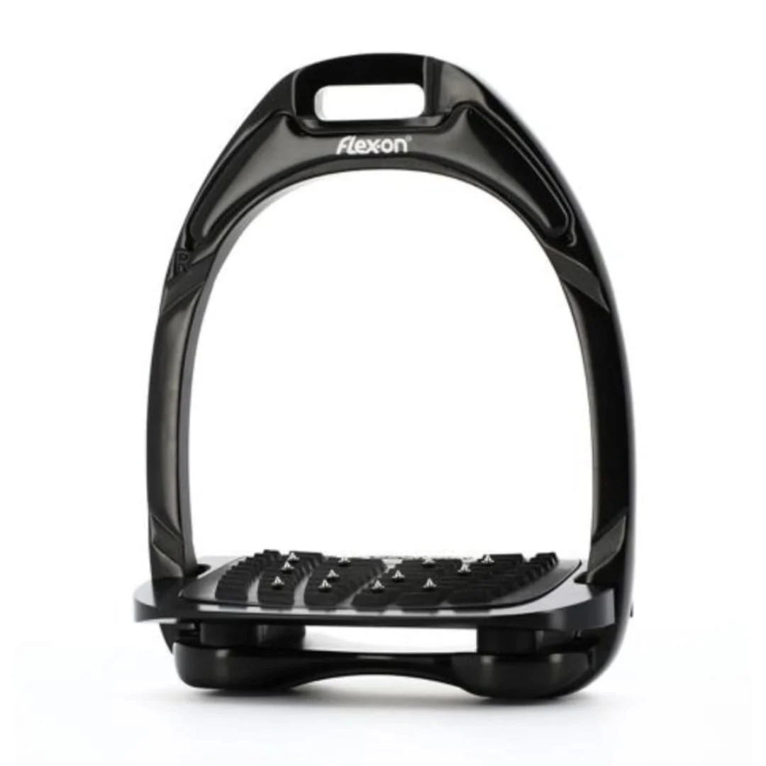 Flex-On Aluminium Safety Stirrups - Black Ultra-Grip Inclined Footbed